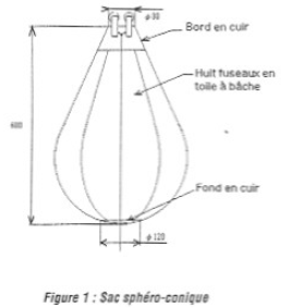 sphéro-conique rempli de billes de verre de 3mm, pour une masse totale de 50kg.